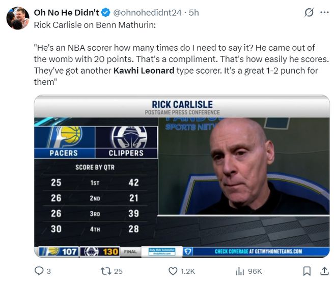 里克-卡莱尔谈到马瑟林也提到了伦纳德,他说道:马瑟林本就是NBA出色的得分手,他拿20分很轻松,他们有了另一位像科怀-伦纳德一样的得分高手,快船拥有了一双绝佳的组合。