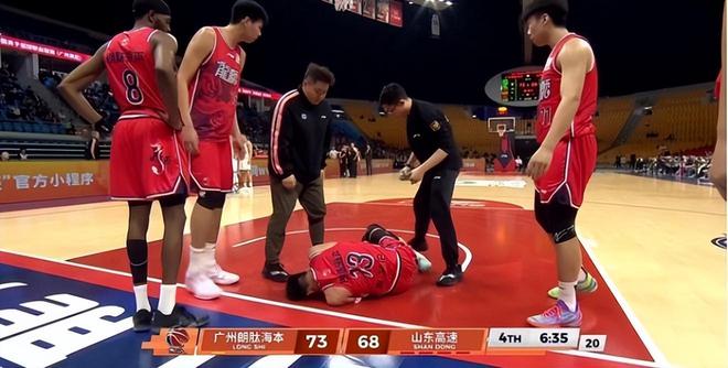 CBA常规赛第二轮补赛继续进行,广州男篮在主场迎战山东队,比赛进行到了第四节;不幸的一幕发生了,后卫郭艾伦在持球突破中翻滚倒地受伤,抱着左膝盖在地上无法起来,而后被担架车抬走。这名后卫再次遭遇了伤病,病情如何?还得等之后的确认。