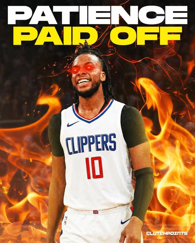 巧合的是,快船在开局6胜21负之后,过去37场比赛取得了26胜11负,同期战绩恰好与骑士相同,两队并列联盟第三(前二是凯尔特人马刺,并列27胜10负),所以别看快船现在才西部第八,他们是真的有争冠可能性。
