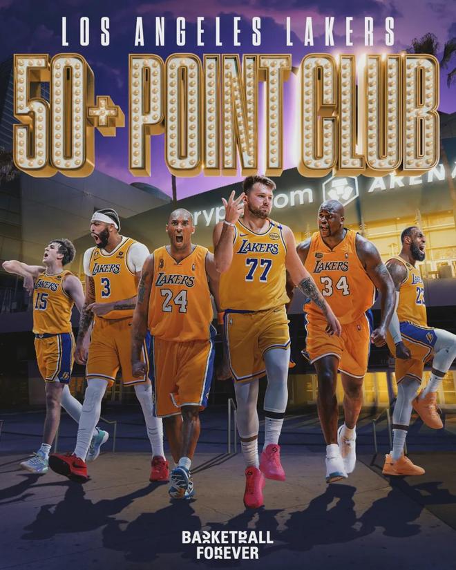 东契奇是湖人队史第三个单场50+10+5+5三分的球员,前两个是科比和里夫斯。里夫斯最近状态也不错,今天20投13中砍下30分5板7助1断,正负值+18。里夫斯是湖人队史第二个0罚球砍下30+5+5的球员,上一个是贾巴尔。