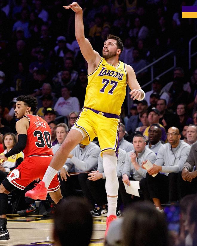 其次,詹姆斯的复出并没有去抢东契奇和里夫斯的出手。本场比赛,东契奇出战36分钟,31投17中,其中三分球14投9中,得到51分10篮板9助攻3抢断1封盖,单场51分创下湖人生涯新高。里夫斯出战38分钟,20投13中,其中三分球7投4中,得到30分5篮板7助攻1抢断,连续两场比赛拿到30+得分,相对的,詹姆斯全场只出手了13次,命中7球,拿到18分7篮板7助攻2抢断1盖帽。正如雷迪克所说,詹姆斯清楚湖人需要东契奇和里夫斯在进攻端打出好状态,就需要给他们大量的持球权,为此詹姆斯不惜让出一部分自己的球权,让东契奇和里夫斯在进攻端全力发挥。