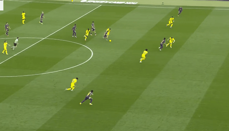 下半场回来,仅仅4分钟,佩佩角球开出制造混乱,无人盯防的盖耶乱战破门,2:1!随后巴萨进一步加强攻势,霍安加西亚禁区外解围出现巨大失误,但是对手面对打空门,却一脚推射偏出!佩德里上场,换下奥尔莫,加强中场的控制。