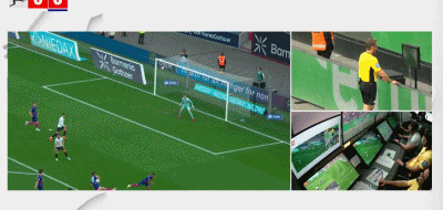 第45分钟,波图尔斯基禁区内手球,主裁判观看VAR后认定药厂进攻越位