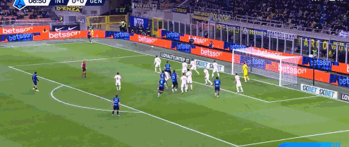 半场:国米1-0热那亚,迪马尔科凌空斩,姆希塔良助攻+中框
