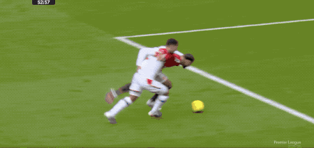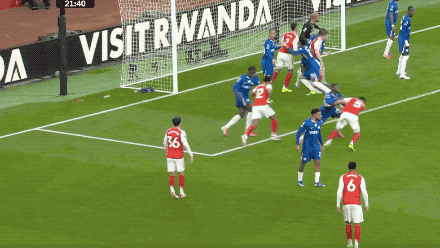 第21分钟,萨卡开出角球,加布里埃尔后点头球摆渡,萨利巴近在咫尺的头球打在萨尔身上,弹进球门。