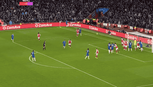 上半场补时阶段,切尔西获得角球,詹姆斯选择转向球门,因卡皮耶自摆乌龙。