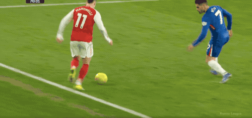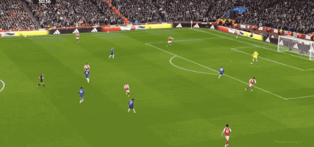 第37分钟,约克雷斯反击过程中选择传球,萨卡做球,廷贝尔虚晃一枪,但之后的射门绵软无力。