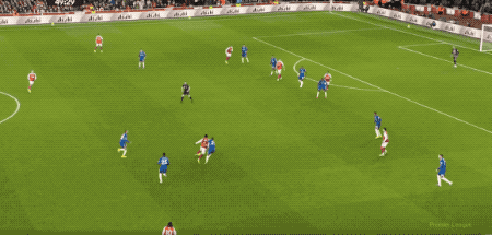 第31分钟,苏维门迪的回传险些铸下大错,拉亚快速完成解围。