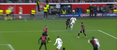 第83分钟,亚瑟传中造险,后卫飞铲将球破坏