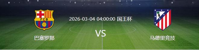 北京时间3月4日凌晨04:00,西班牙国王杯半决赛次回合将上演一场万众瞩目的强强对话,西甲两大豪门狭路相逢,巴萨决战马德里竞技。首回合比赛,巴萨0:4告负,次回合再战马竞,巴萨最少要赢马竞4球以上,出线形势可谓岌岌可危。