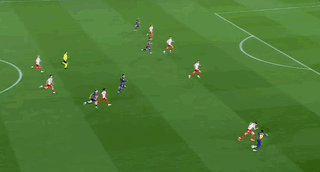 第72分钟,坎塞洛右路斜吊禁区,贝尔纳尔后点将球挡进网窝,3比0。