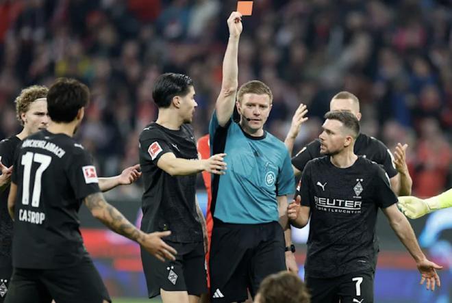 北京时间3月7日,德甲第25轮,拜仁慕尼黑4-1门兴格拉德巴赫。比赛第55分钟,主裁判罗伯特-施罗德在门兴球员赖茨与拜仁前锋雅克松的一次对抗后,将赖茨直接罚下。