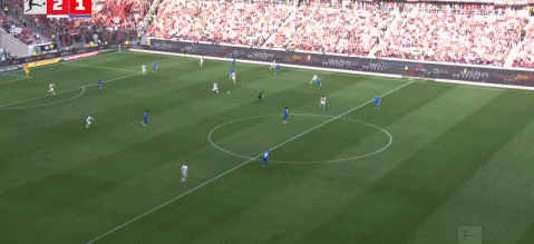 第45+3分钟,格里马尔多前场定位球直接破门,勒沃库森2-2