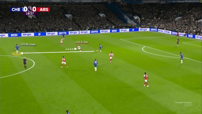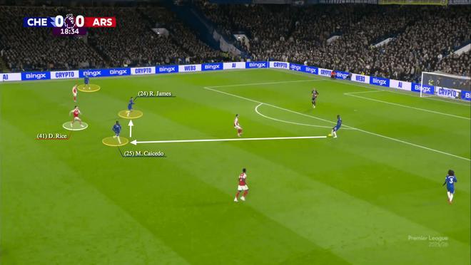 恩佐-费尔南德斯死守自己的防守目标雅各布-拉姆齐,不愿脱离岗位,让利夫拉门托得以从中场长驱直入。前场方面,威洛克与沃尔特马德突入锋线,迫使各自的防守者里斯-詹姆斯、莫伊塞斯-凯塞多被迫回撤。