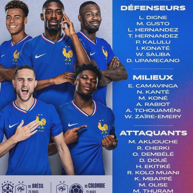 萨利巴入选了最新一期法国国家队。